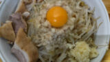 麺の量は茹で上がり後”400g”と相当なボリューム。それに加えてたっぷりのチャーシューとチーズにアブラ…。ヘビーな1杯なので、お腹をしっかり空かせてから訪問がおすすめです!